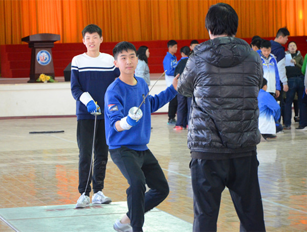 击剑是从古代剑术决斗中发展起来的一项体育项目,是智者的运动,非常讲究战术。击剑的时候要随时看反应和专注力,对身体的灵活性也有一定的要求,不同的剑种有不同的要求,花剑对手上的动作还有头脑都有一定的要求,更多的是需要使用者用头脑进行思考。洛阳国际学校的将击剑作为一项常设课程,已有相当长的一段时间了。学校聘请专业教练对学生进行培训,以期通过击剑项目培养学生优雅的体态、敏捷的思维、良好的心态和坚毅的品质。